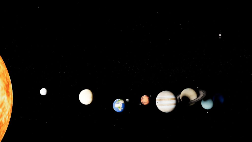 Added a sphere light at the sun such that the planets are only lit on the side facing it.